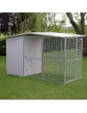 - Living area made of hot-dip galvanized mesh panels, 5 x 5 cm mesh, 3.9 mm wire. Includes gate with padlockable latch, opening outwards from left to right (can be extended by adding more panels)