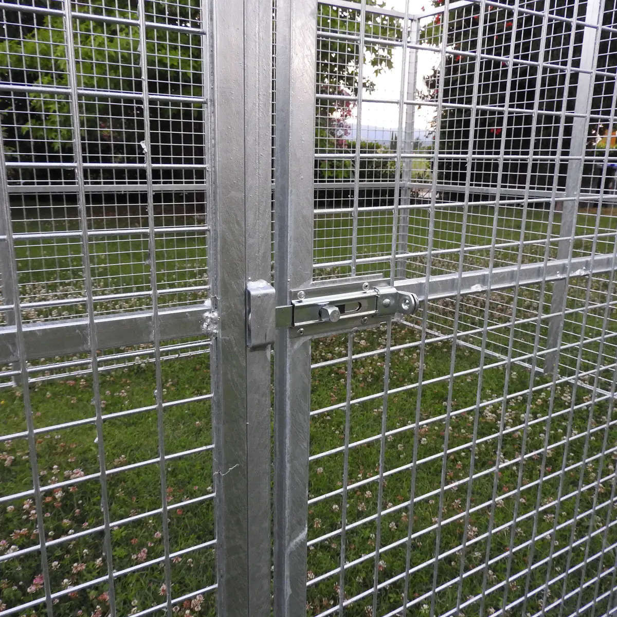 DOG FENCES in electro-welded mesh, with and without insulated roof, made with hot-dip galvanized electro-welded mesh panels and with gate. Dog net mesh 50 x 50 mm, wire 3.9 mm. Sturdy closure with padlock bolt and feet at the base.