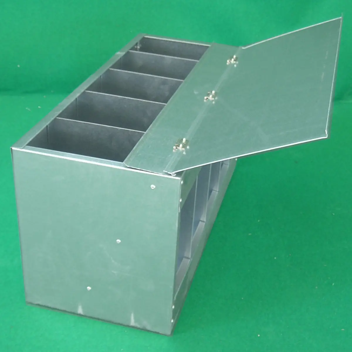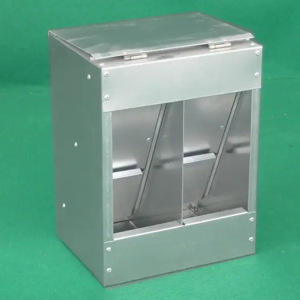 - Mangiatoia a 5 scomparti per pollamemangiatoia antispreco mod. Grande: realizzata in resistente lamiera, progettata con livelli regolabili e caricamento dall'alto