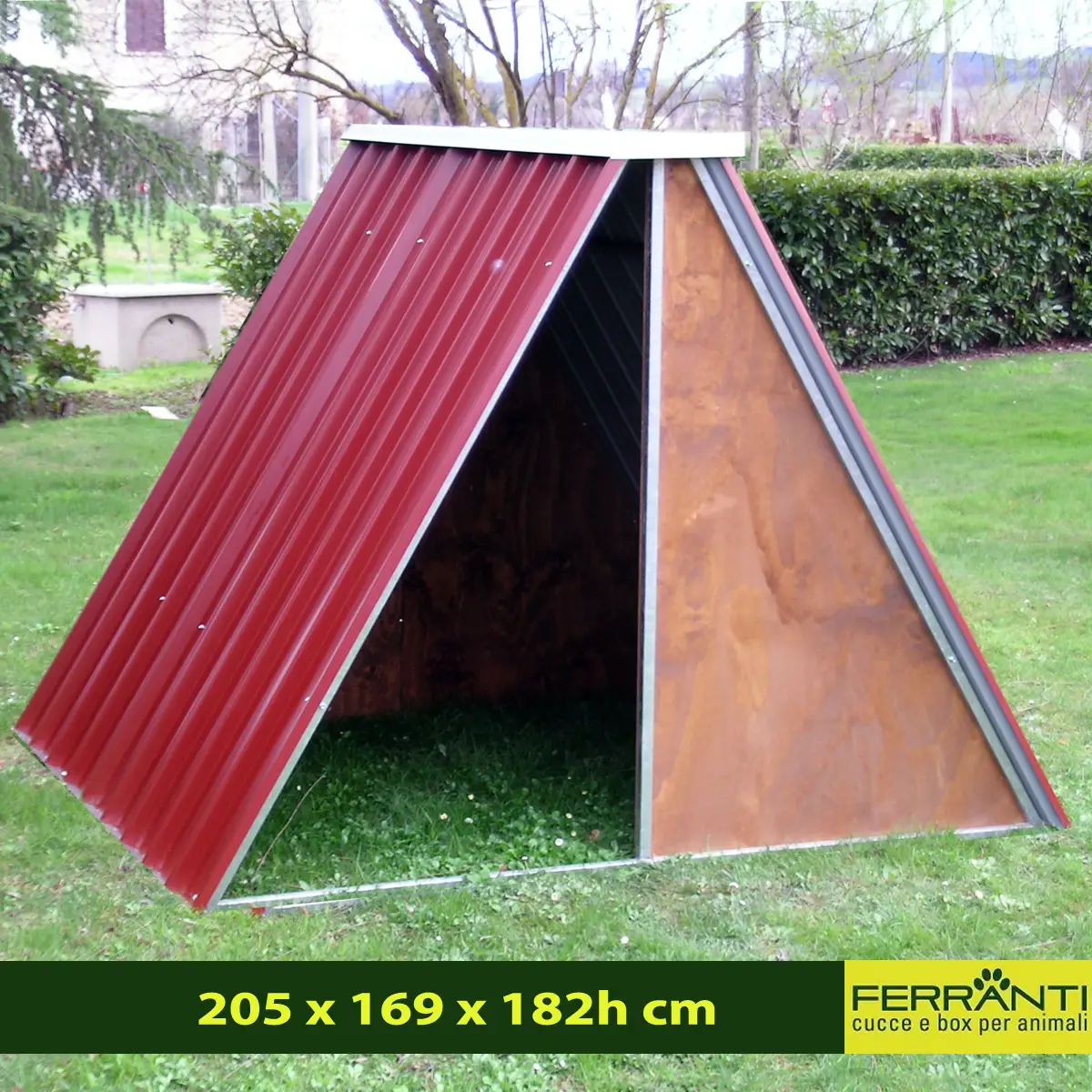 - 205 x 169 x 182h cm (Ricovero mod. Medio) dim. interne 200 x 150 massimo 4 animali
