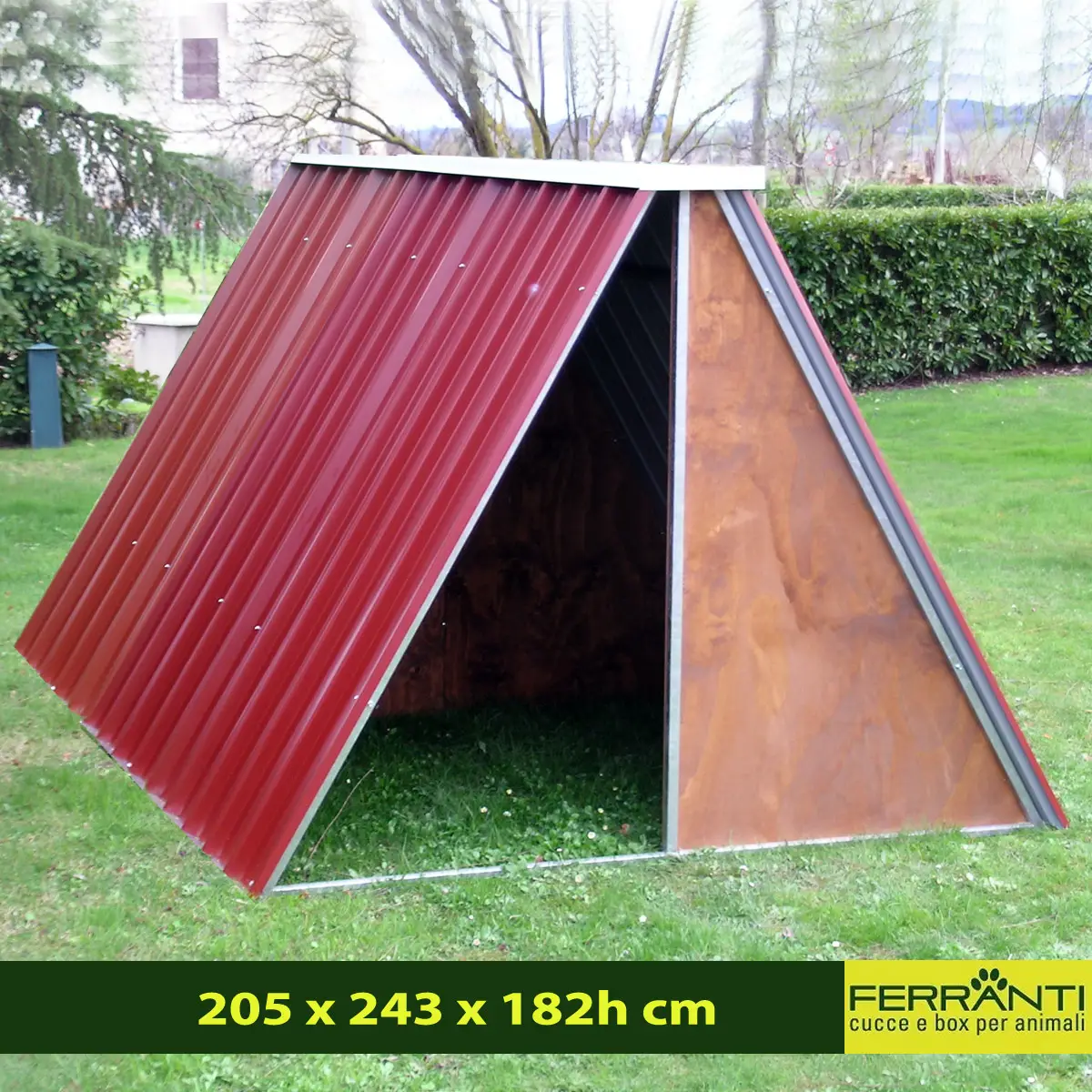 - 205 x 243 x 182h cm (Ricovero mod. Grande) dim. interne 200 x 225 massimo 5 animali
