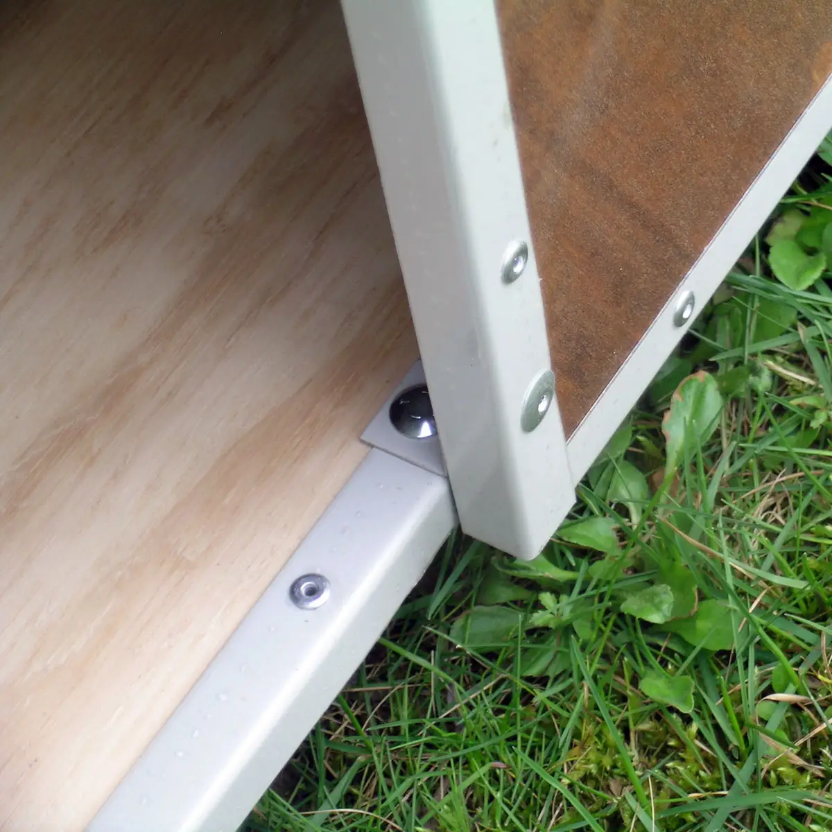 - basamento interno in legno fisso, rialzato da terra di 7 cm con piedini in plastica: garantisce isolamento e protezione dal suolo