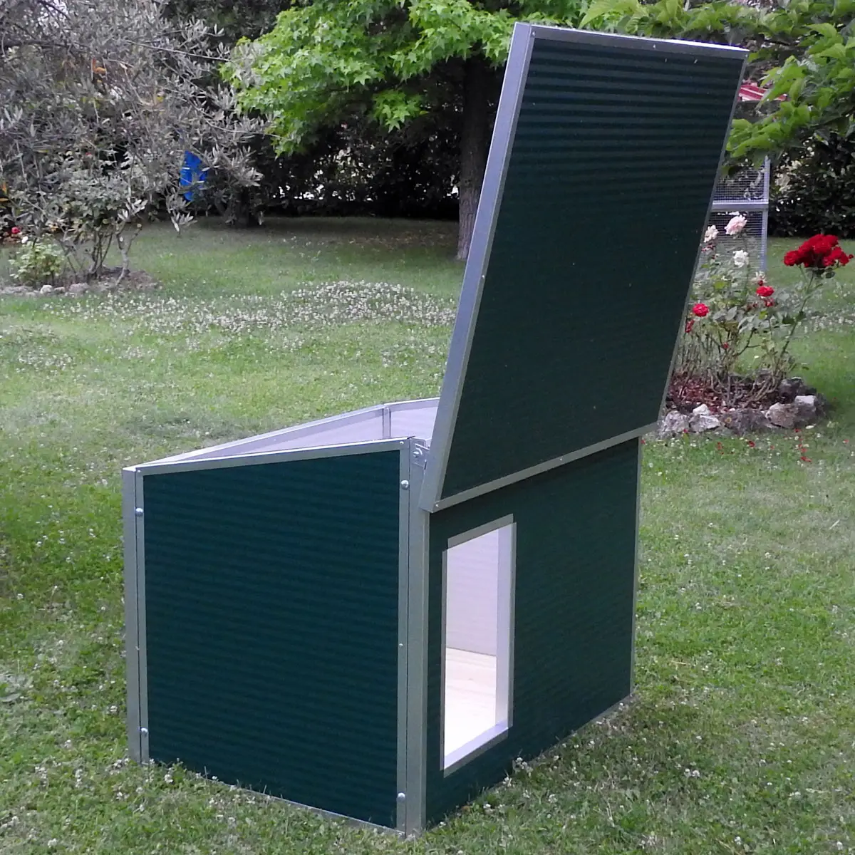 - cucce coibentate realizzate in pannelli isolanti con tetto spiovente apribile, progettate appositamente per cani di taglia grande