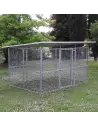 Recinto PER CANI in RETE elettrosaldata, con e senza tettoia in coibentato, realizzato con pannelli in rete elettrosaldata zincata a caldo e con cancello. Rete per cani maglia 5 x 5 cm, filo 3,9 mm. Robusta chiusura con catenaccio portalucchetto e piedini alla base.