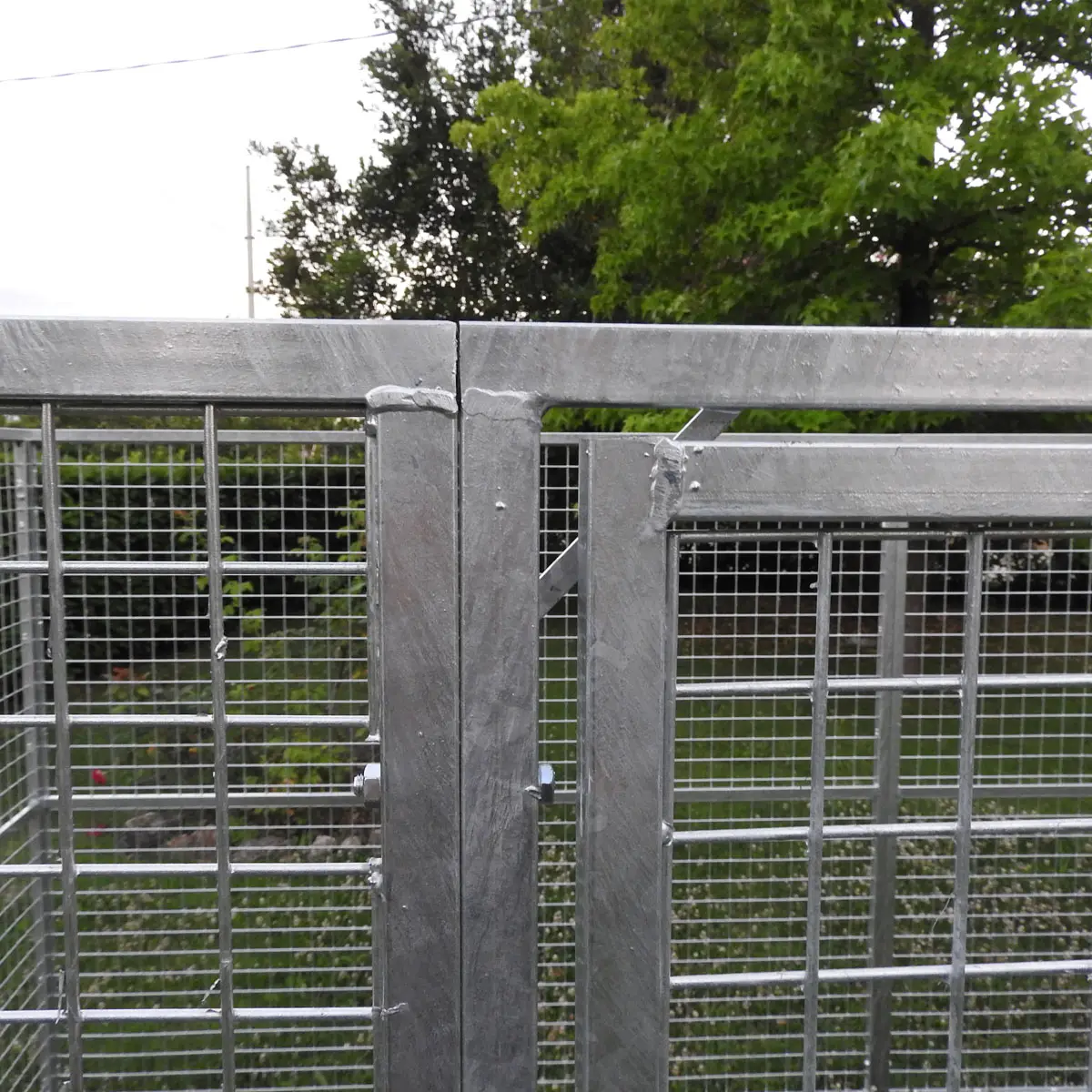 Recinto in RETE PER VOLIERA elettrosaldata, con e senza tettoia in coibentato, realizzato con pannelli in rete zincata maglia 2,5 x 2,5 cm, filo 2 mm, completo di cancello. La rete è rivettata su cornici in tubolare zincato.