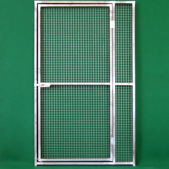 - cancelli e pannelli per gabbie e voliere, con porta e senza porta, in rete zincata maglia 2,5 x 2,5 cm filo 2 mm