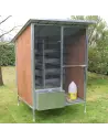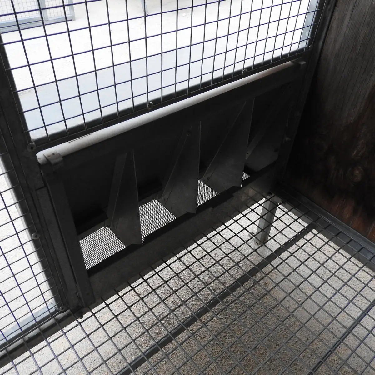 - Mangiatoia in lamiera, con 4 scomparti regolabili in altezza e riempibili dall'esterno, per una gestione comoda dell'alimentazione
